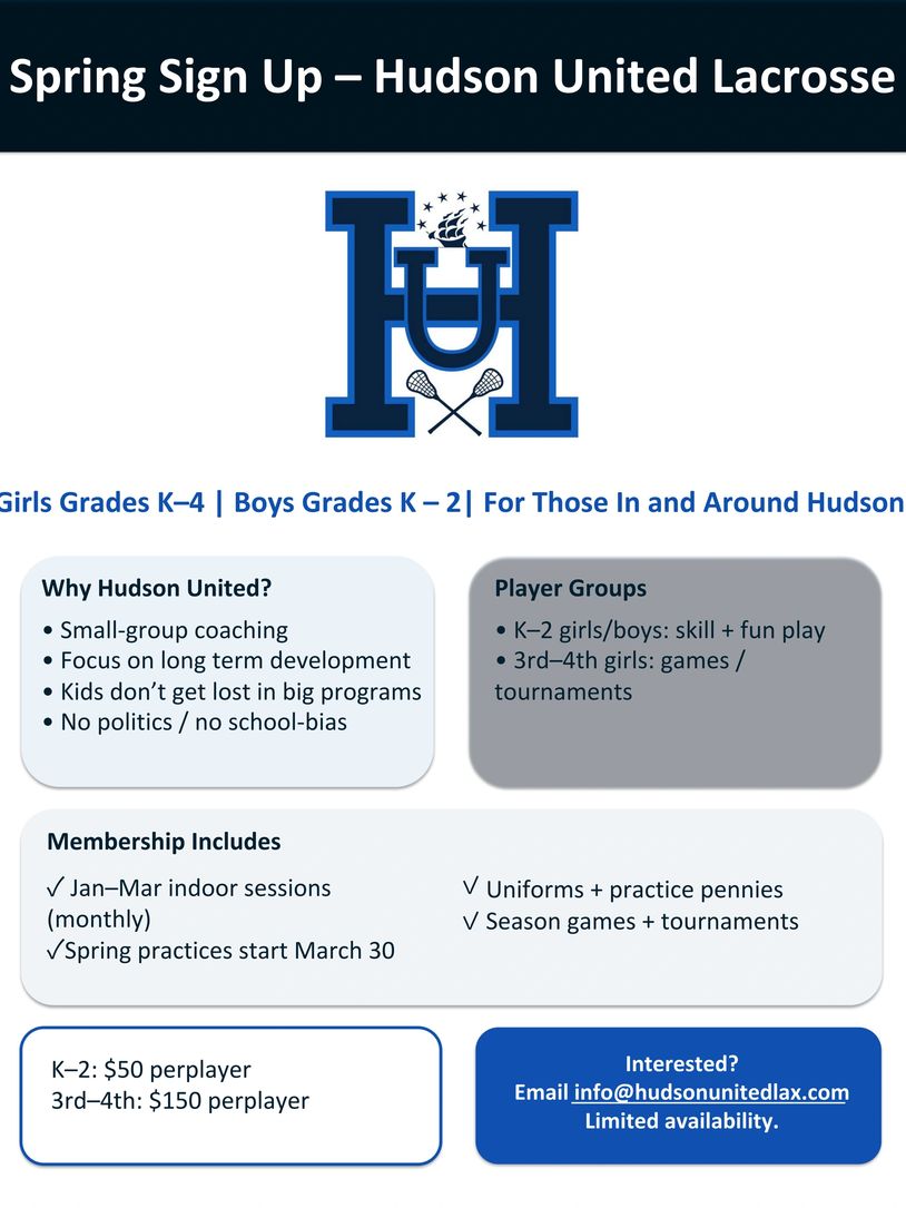 Hudson United Lacrosse stands out for its commitment to personalized coaching that truly accelerates player growth. Every athlete receives tailored instruction based on their unique strengths, weaknesses, and goals, with coaches creating custom practice plans, and holding one-on-one goal-setting sessions throughout the season. This hands-on, player-centered approach ensures that each member of Hudson United gets the precise guidance needed to reach their full potential on and off the field.